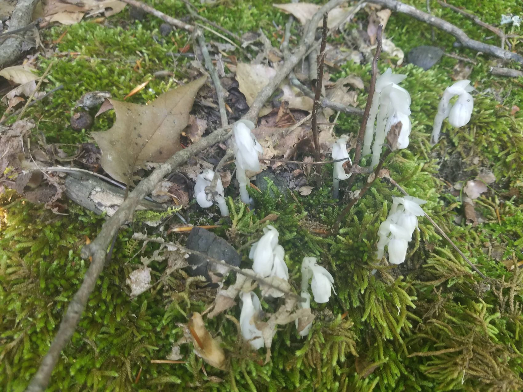 I also saw many pretty wildflowers including Fire Pink, Wintergreen and surprisingly for this far east a nice bunch of Indian Pipe. But the highlight of the day was 3 barred owl sightings! Two flew through the woods, but the tree coverage was too thick to spy where they landed. However, one landed on a branch very close to me and I got a good view of him. After observing him for a bit, I tried to get a picture, but he flew away as soon as I went for my camera.