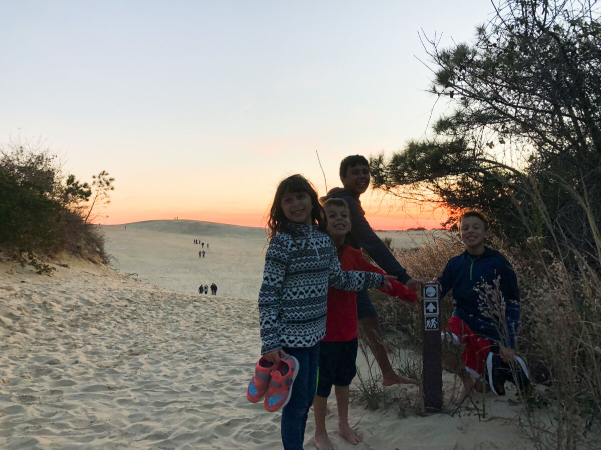 We love hiking and camping, but preparing a whole family for camping is a lot of work, so we decided to do this challenge via day trips and three multi- day trips (Asheville, Beaufort and Outer Banks) where we stayed in AirBnBs. This really made it so much easier for us to pack and plan for, and it was great to have a nice hot shower to come home to after a long day of hiking. Also we used this challenge as a way to escape the heat in the summer by doing the higher elevation hikes in the hot and humid months and doing the coastal areas in the colder months after the mosquitos and humidity had disappeared. This made for generally pleasant hiking throughout the challenge. Along the way to our hikes, we created traditions by listening to specific podcasts (i.e. Historical Figures, Wow in the World, Storytime and of course Away Message from Our State Magazine) driving to and from , discussion and reflections about the hike historically and environmentally (who lived in the area, how did they live, their lifestyle, school, slavery, type of industry, what transportation existed at that time period and how does it compare to today’s modern world) and checked out the best eats in town.