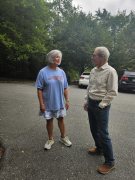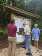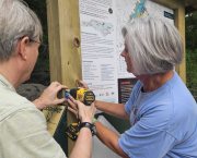- Friends of the MST’s Executive Director Brent Laurenz and GFWC of NC’s Past President Kim Fulcher install new kiosk panel at Falls Lake