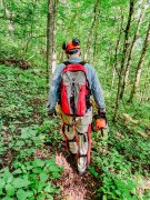 We have been working closely with our partners at the Blue Ridge Parkway on MST recovery efforts along the entire trail corridor that parallels the Parkway, but because of ongoing road repaving and rehabilitation efforts in Ashe County our volunteers had not been cleared to resume trail work until June.
