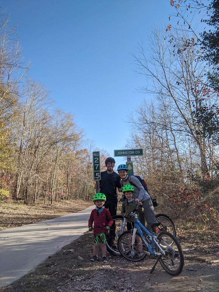 They decided as a family to set an ambitious goal this fall–to complete the entire MST before the youngest boy finishes high school. This works to about 80 miles a year, which won’t seem like much once the boys are tweens and teens, but for now is a pretty big goal. “We can hike about 4-6 miles in half a day without having to carry the 3 year old, and recently biked the entire Neuse River Greenway portion of the MST over 2 days.” For now, they’ll stick to trails and greenways because the boys aren’t ready to hike the roads and have way too much energy to sit in a boat for any of the paddle options.