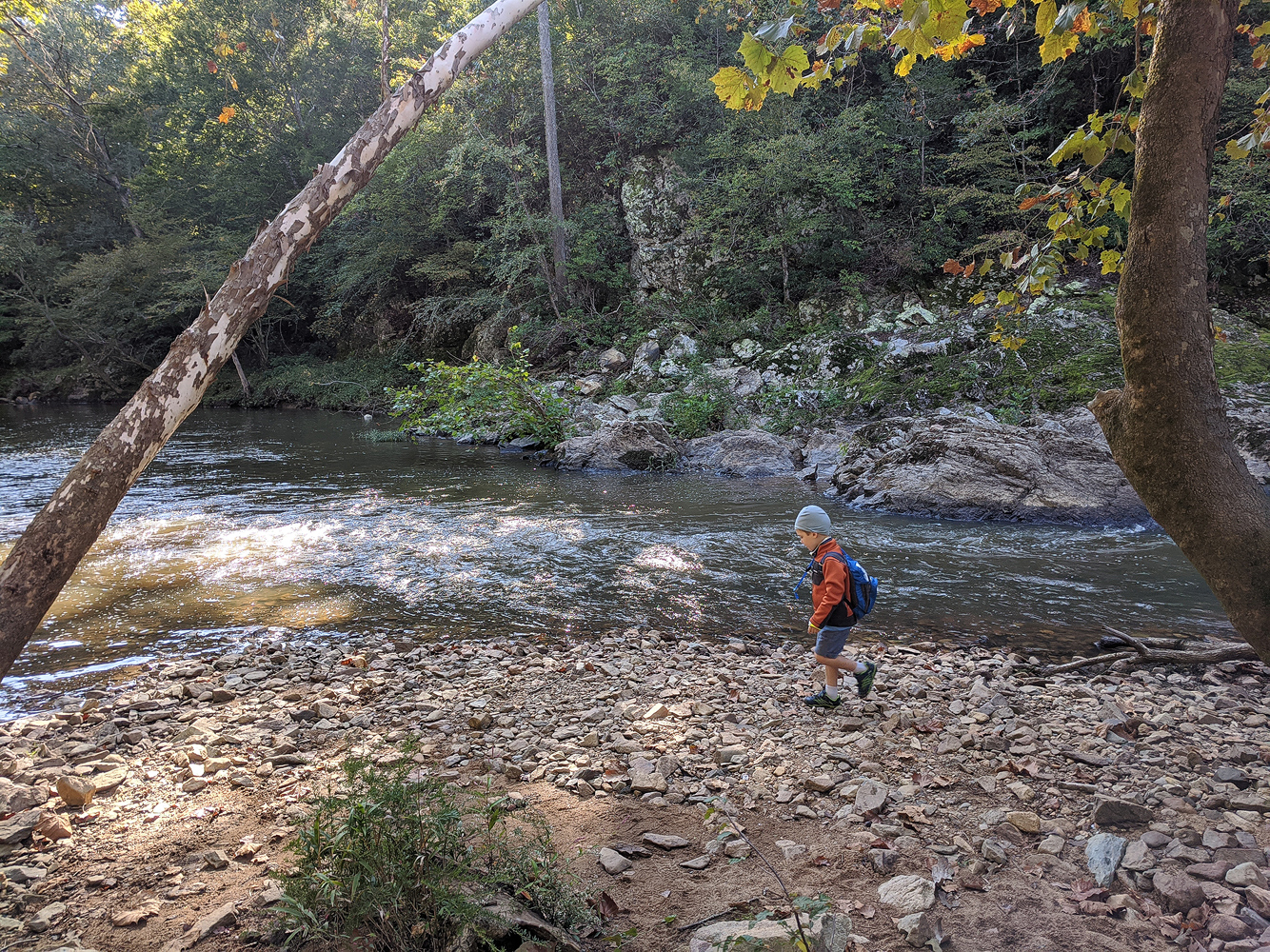 “Our plan is to stick to day hikes as much as possible with a few one night backpacking trips for the next couple of years. With Covid around we obviously can’t take advantage of shuttles or trail angels, so we’ve been doing lots of car drops as we work our way down the Eno River and along Falls Lake.”