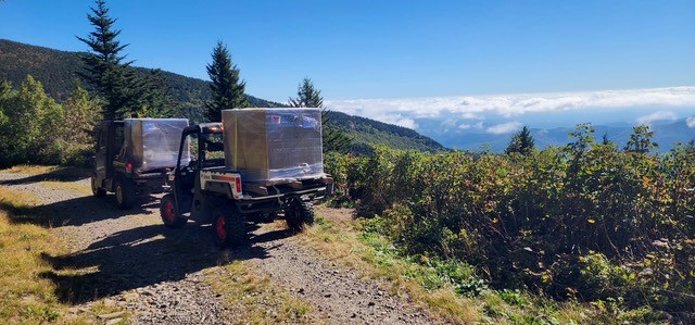 High Peaks is the Friends of Mt. Mitchell State Park organization. Park staff assisted in the installation by hauling the boxes out to the site on all-terrain vehicles. Members of the Carolina Mountain Club’s Monday Trail Crew – headed by Whitehouse – also assisted with the installation.