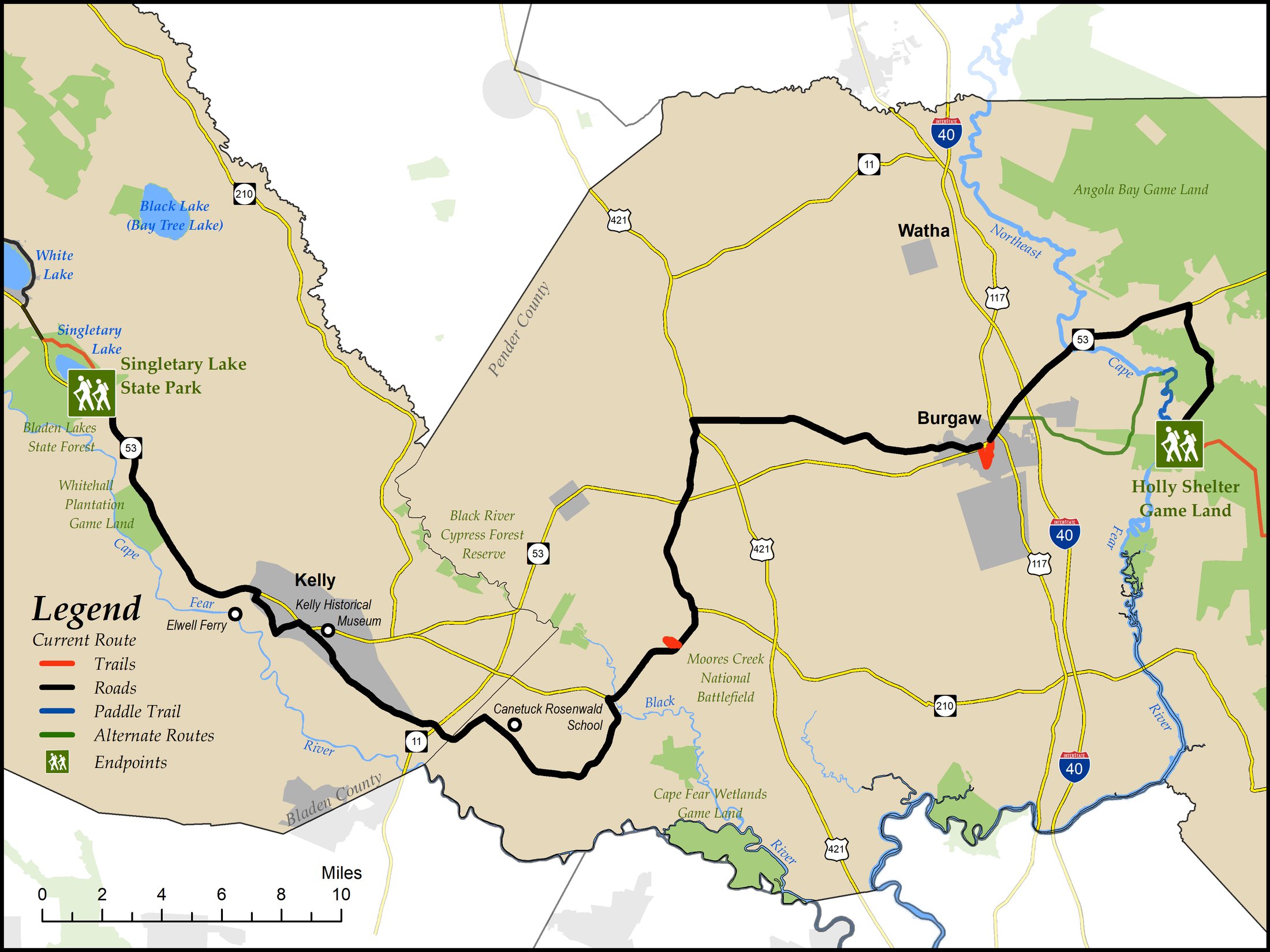 Singletary Lake State Park to Holly Shelter Game Land