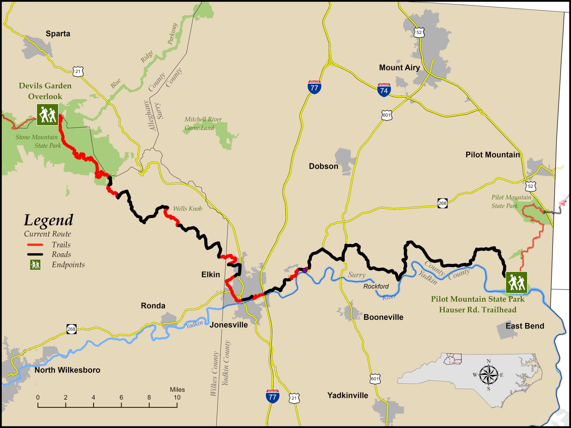 - An alternate paddle to complete the eastern part of this segment from Elkin to Pilot Mountain State Park