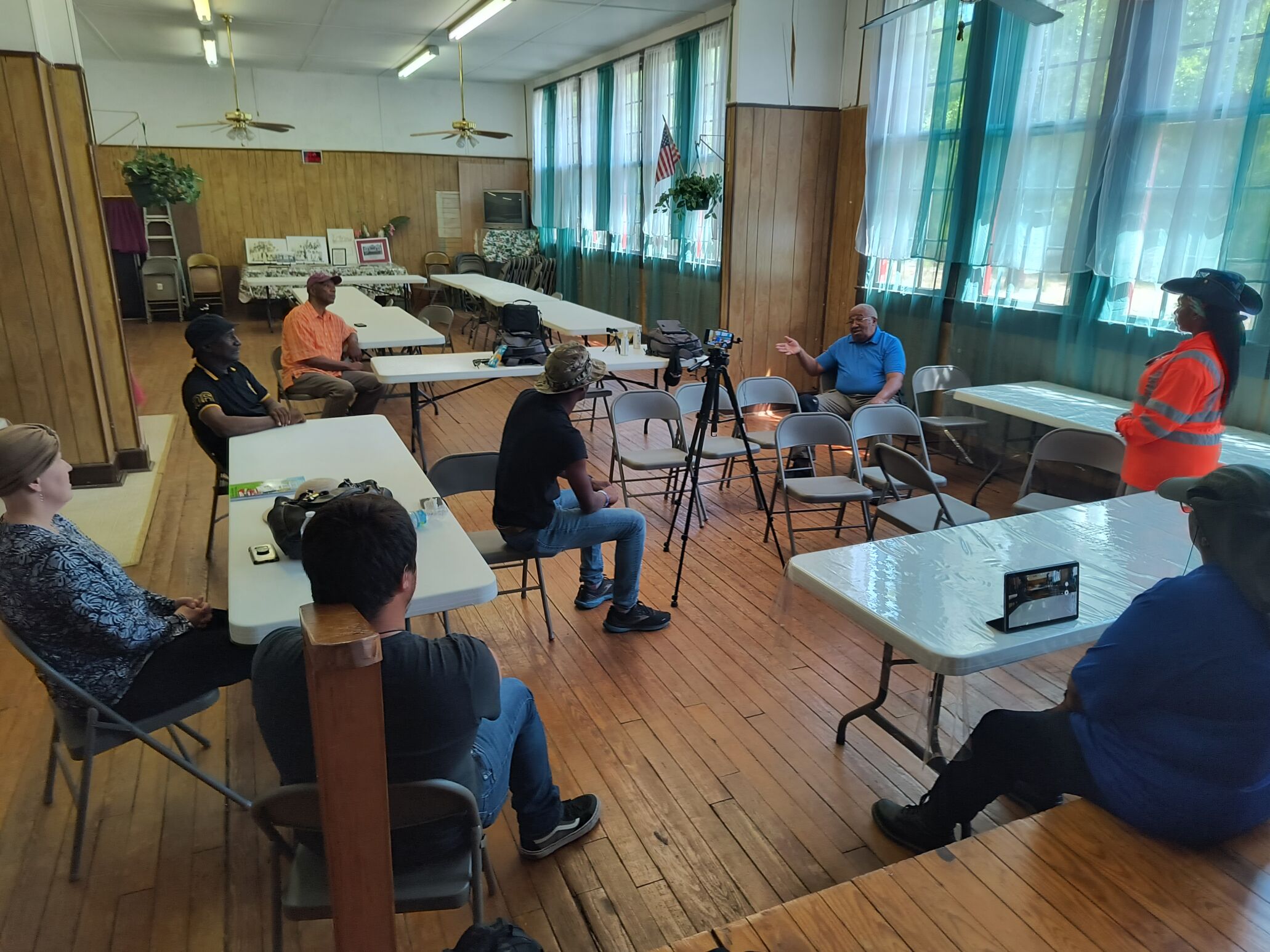 At Canetuck, the ECSU students met with community members and those with close ties to the former Rosenwald School. Using Lenovo technology, the students recorded conversations with former Rosenwald School student Dr. Richard Newkirk and Canetuck Community Center President Verta Key to preserve their history.