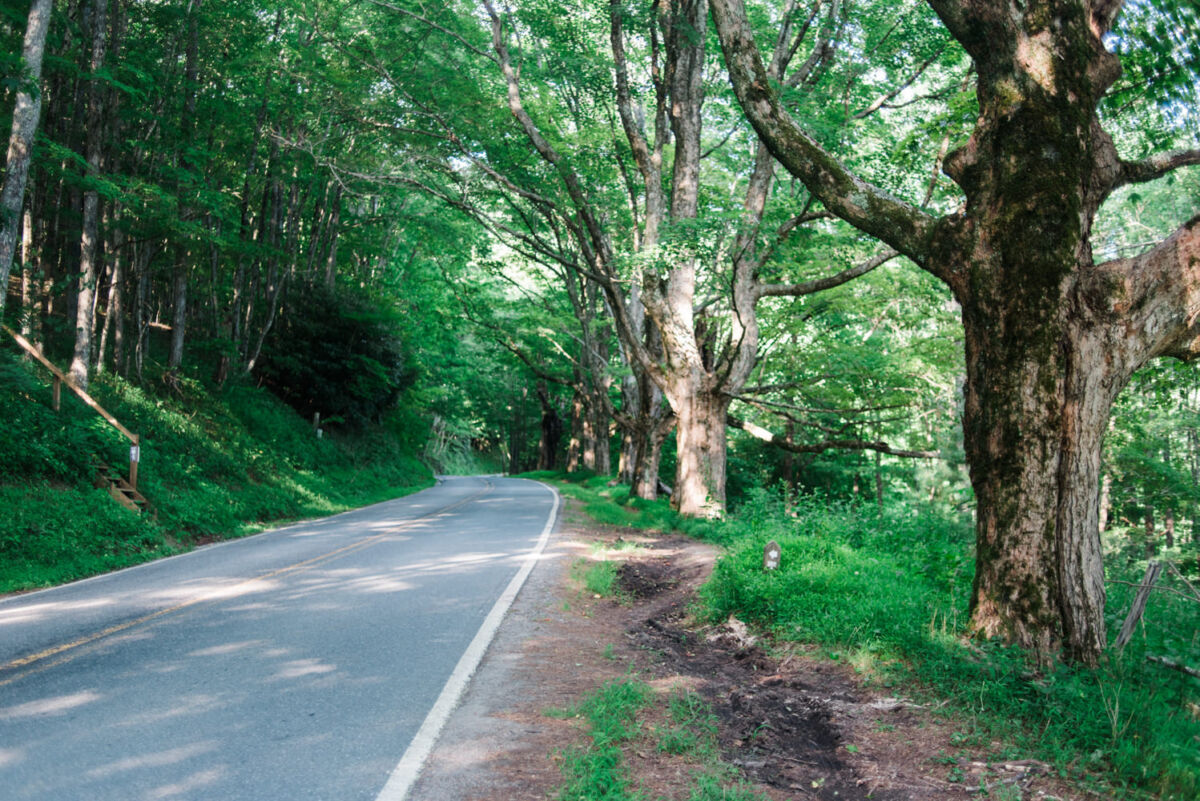Through the tunnel and past the old Carriage House, I walk up to Flat Top Manor and take a seat on the front steps. The once luxurious summer house of Moses Cone now holds the Parkway Craft Center, which is closed for the evening so I have the place to myself. I don’t rest long before I head back over to the woods to find my bike just where I left it early this morning. Thankfully, it’s all downhill back to my van on Shulls Mill Road.