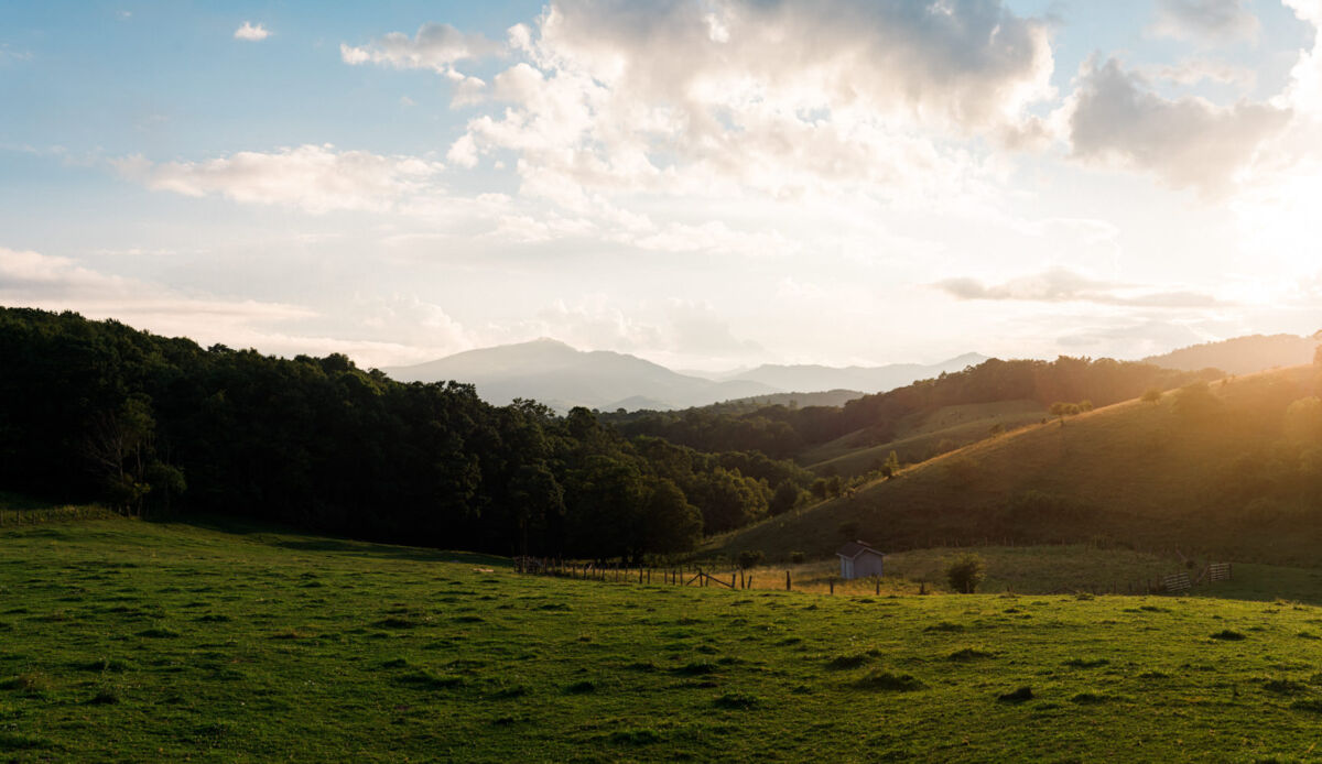 Glancing at my watch I realize that I need to quicken my pace if I hope to catch the sunset at the meadow near the tunnel. I stop long enough to admire the Turks Cap Lily that is growing beside the trail. It is as tall as I am! Beyond it is a fence and the meadow with a few cows grazing. The trees give way and I soon reach the right turn to go through the tunnel beneath the Blue Ridge Parkway and on towards Cone Manor. Instead of turning right, though, I turn left and walk 40 yards up the hill (Pro Tip: if you ever do this hike make sure you take the time to walk up the hill- you won’t be disappointed!). As I clear the treeline below, I’m pleased to see that the clouds have lifted off of Grandfather Mountain. And, I am just in time to catch the sunset! The view is spectacular- open meadows, rolling hills, and my old friend- Grandfather Mountain standing proud on the horizon. It has been seven years since I’ve hiked this stretch of the Mountains-to-Sea Trail and it is just as I remembered- Perfect.