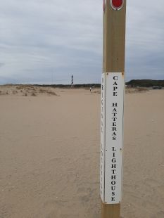The hike officially begins at the Cape Hatteras Lighthouse, at 210 feet the tallest brick lighthouse in North America and the most recognizable symbol of the Outer Banks. You can still see the path the lighthouse took when it was moved back from its precarious perch close to the surf to its new home.
